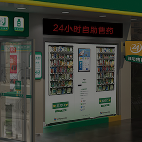 24小时全天候自助售取药机,支持医保支付与互联网药事服务。